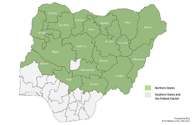 Northern Nigeria comprises 19 states (Figure 1) divided into three geo-political zones (North-West, North-Central, and North-East). Estimates from the last census (conducted in 2006) indicated Northern Nigeria has approximately 53% of the country’s total population. This region is characterized by poor health indices, low socioeconomic status, and the highest number of deaths and diseases compared with the Southern regions of Nigeria.8